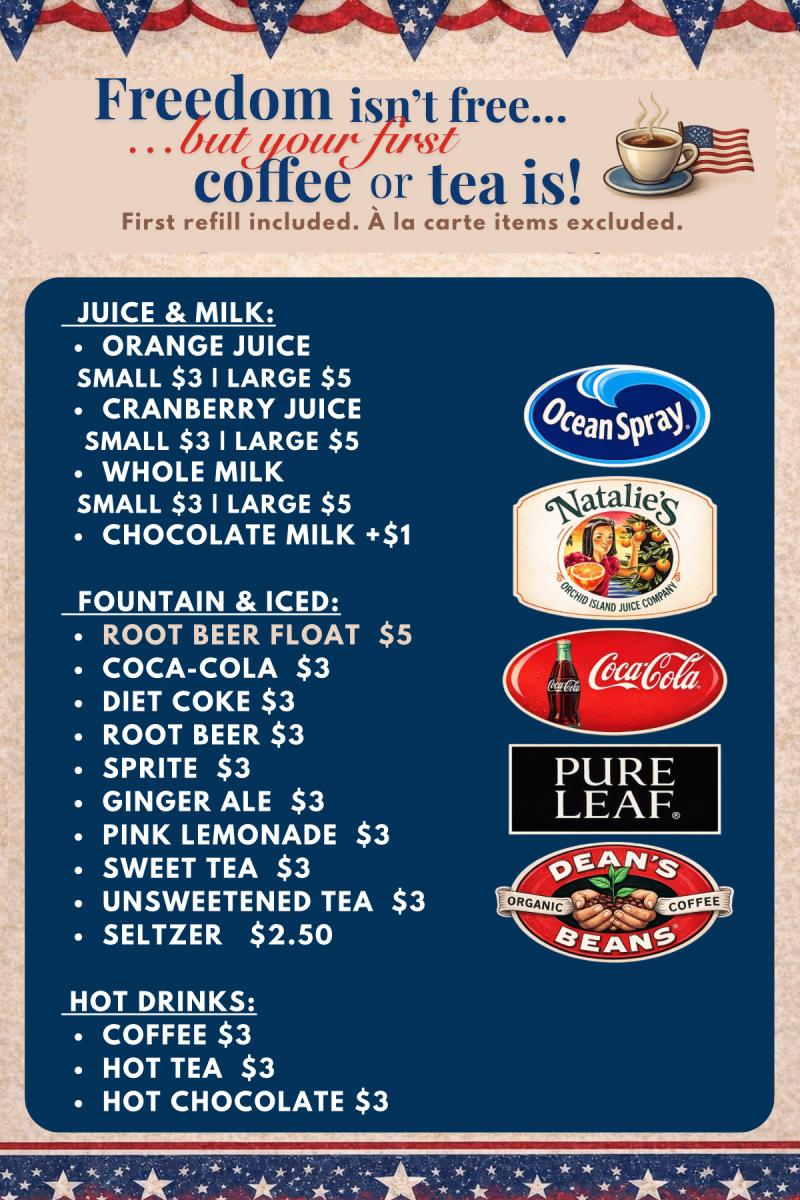We also offer more than root beer floats! Try a sprite, pink lemonade or cola float! All floats made with local Snow's ice cream!